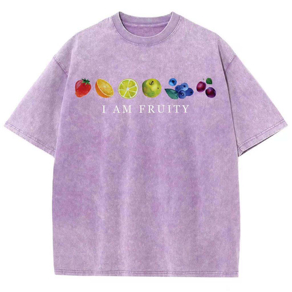 Линия женских футболок с рисунком фруктов из мультфильмов, стираный хлопок, короткие рукава, круглый вырез, свободные, повседневные, простые