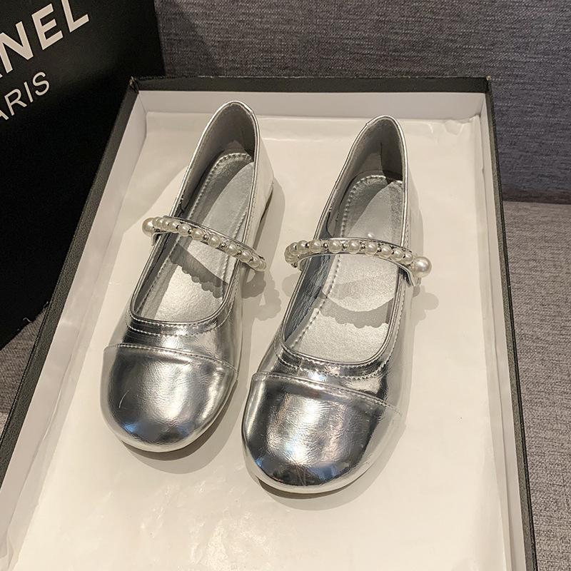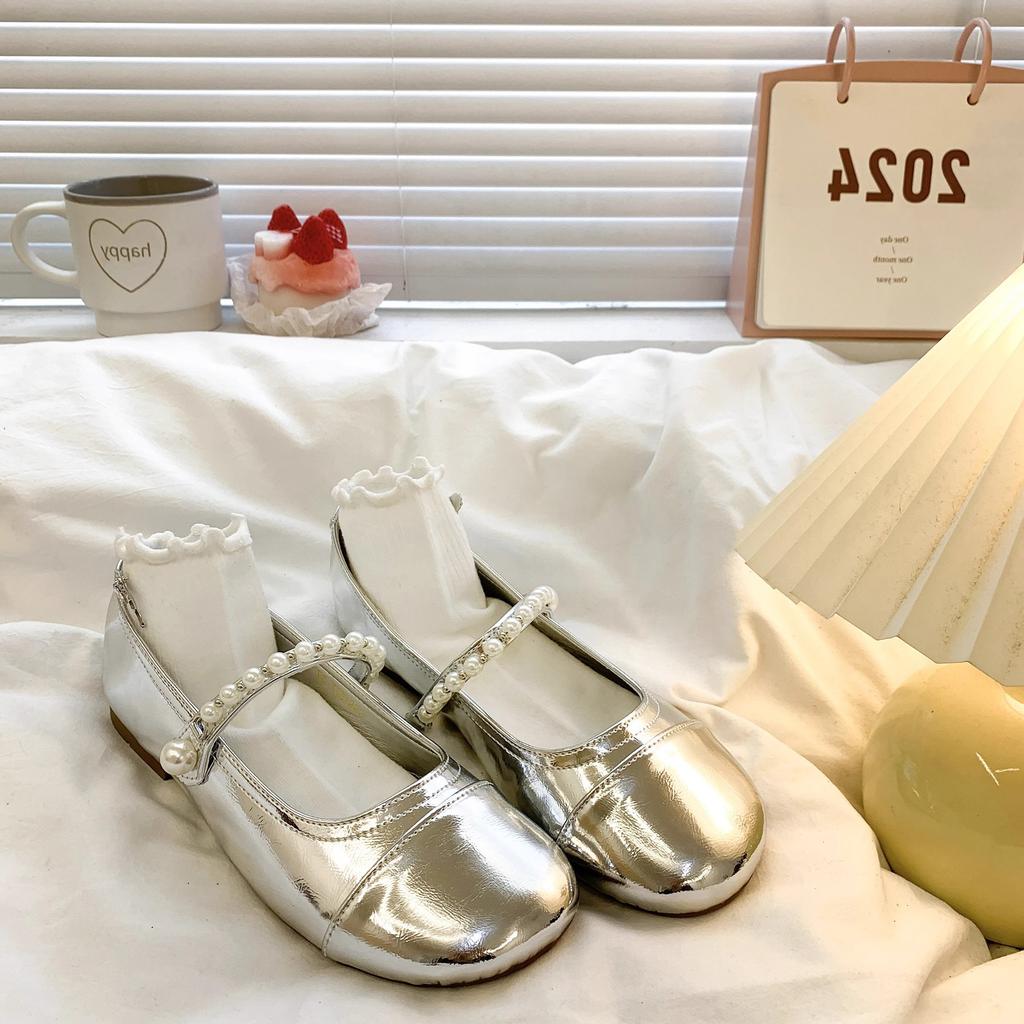 Туфли Mary Jane Small из кожи с серебряным французским жемчугом, женские, весна-осень 2025 г., новые универсальные, в стиле ретро, с легким воротом, на плоской подошве, с юбкой