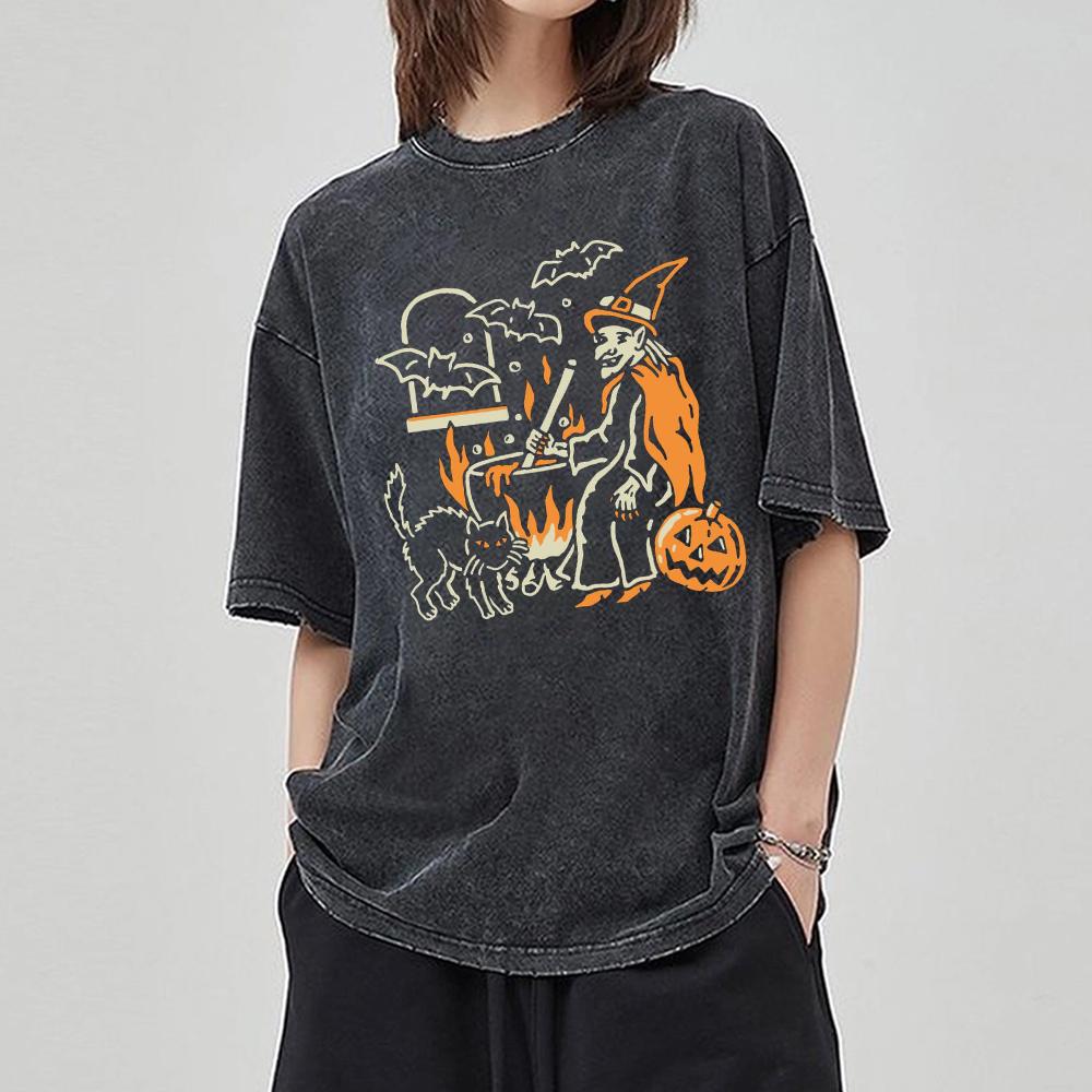 Летняя женская футболка унисекс с коротким рукавом и принтом тыквы на тему Хэллоуина, повседневная мужская ретро-одежда