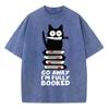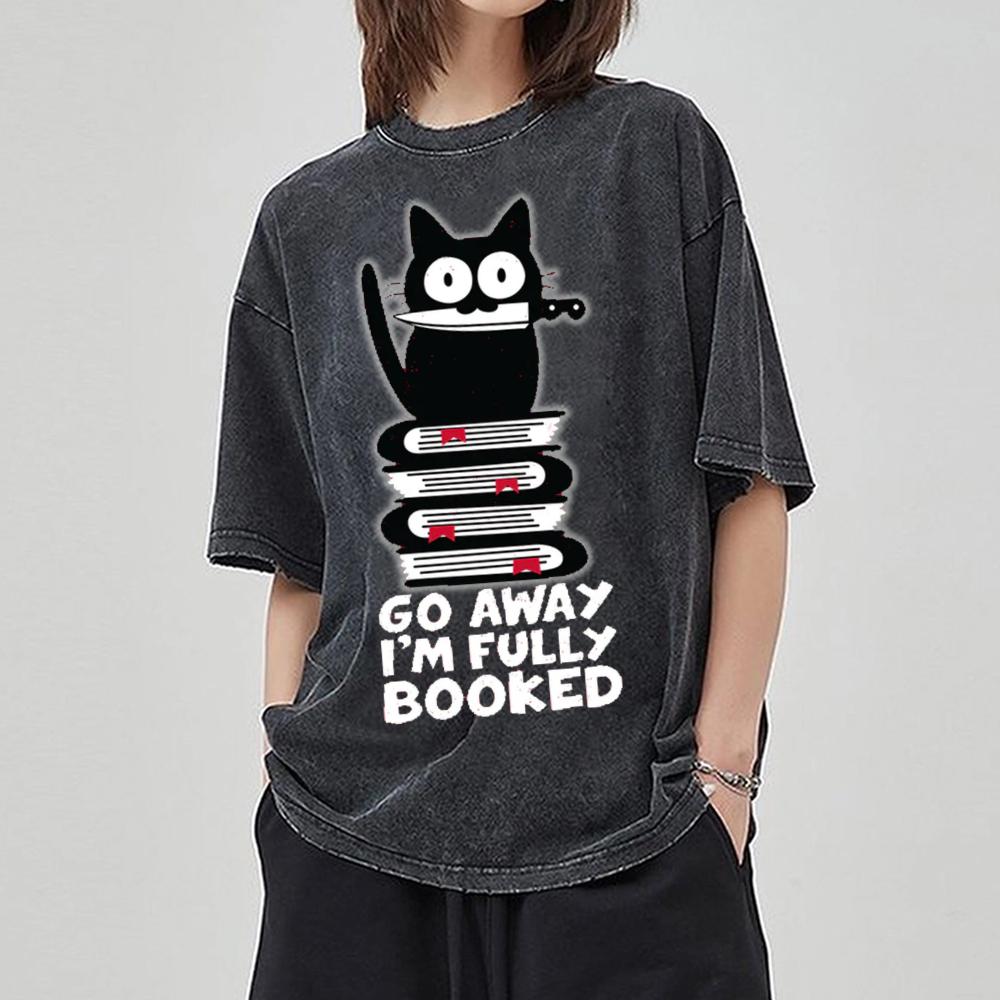 Летняя распродажа, женская футболка с принтом «Черная кошка» из выстиранного денима, хлопковая свободная футболка с коротким рукавом, студенческий топ высокого качества, милый