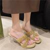 Женские туфли на высоком каблуке лето 2025 новинка французский толстый каблук модные босоножки со стразами круглый носок водонепроницаемая платформа уличные тапочки