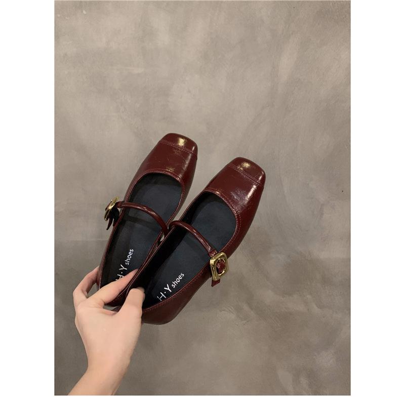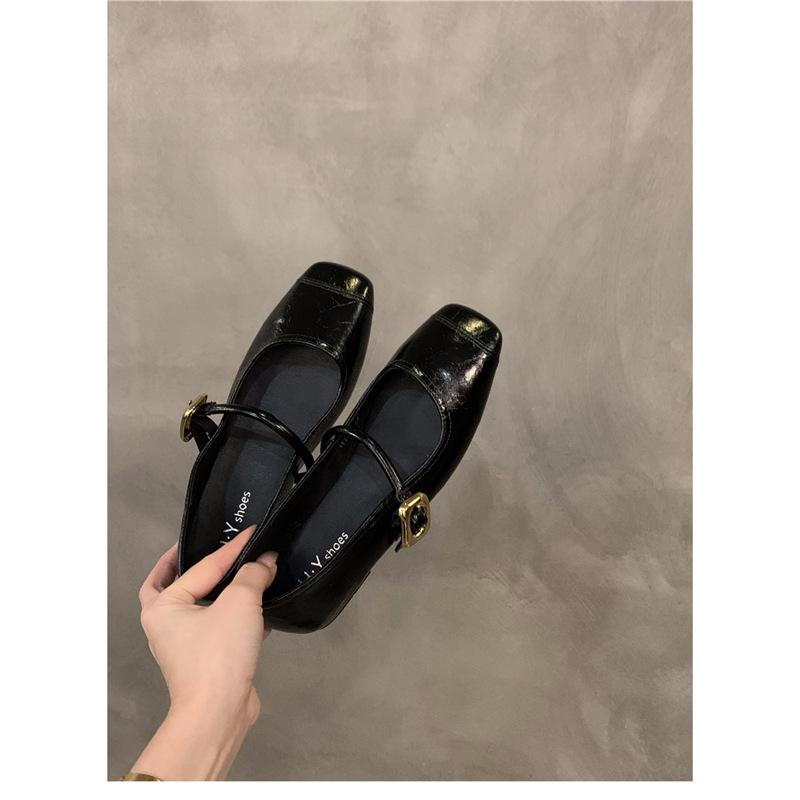 Женские туфли Мэри Джейн весна-лето 2024, новые, с плоским дном, с квадратным носком, с ремешком, черные, одинарные, женские туфли