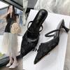 Женские туфли на высоком каблуке весна и лето 2025 новые французские с острым носком, на шпильке, с кружевом и сеткой, мюли