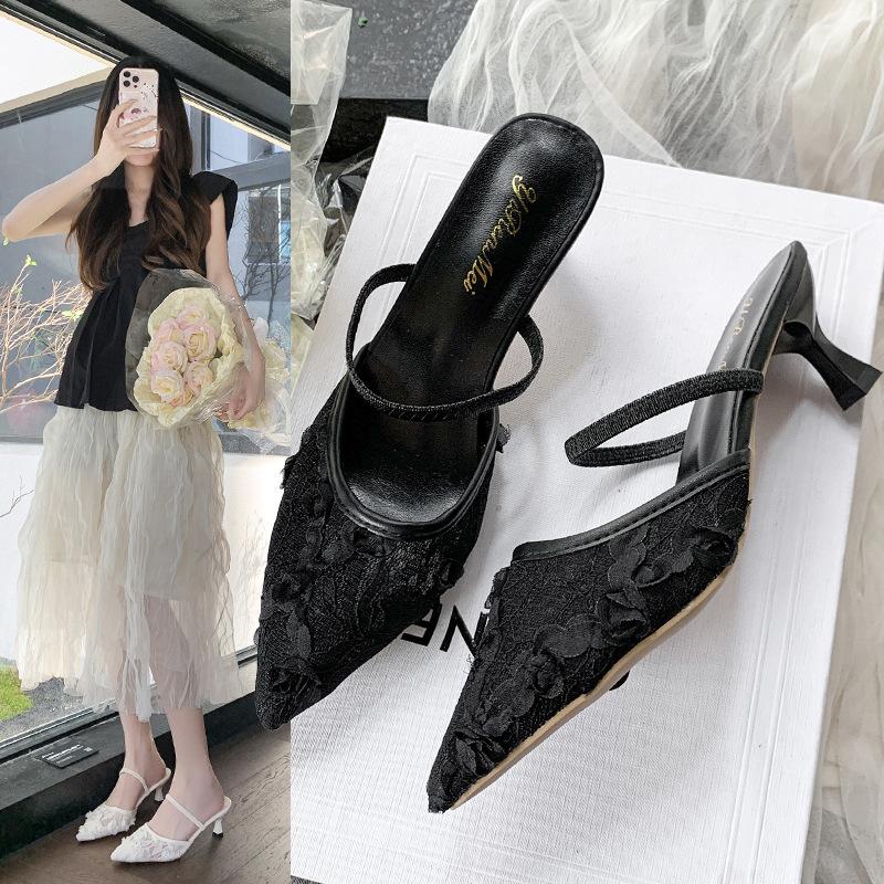 Женские туфли на высоком каблуке весна и лето 2025 новые французские с острым носком, на шпильке, с кружевом и сеткой, мюли — купить товар онлайн с бесплатной доставкой до всему миру!