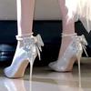 Женские туфли на высоком каблуке лето 2024 новая обувь для свадьбы высокого класса с бантом из стразов и жемчужной цепочкой, остроносые, на тонком каблуке, одинарные туфли