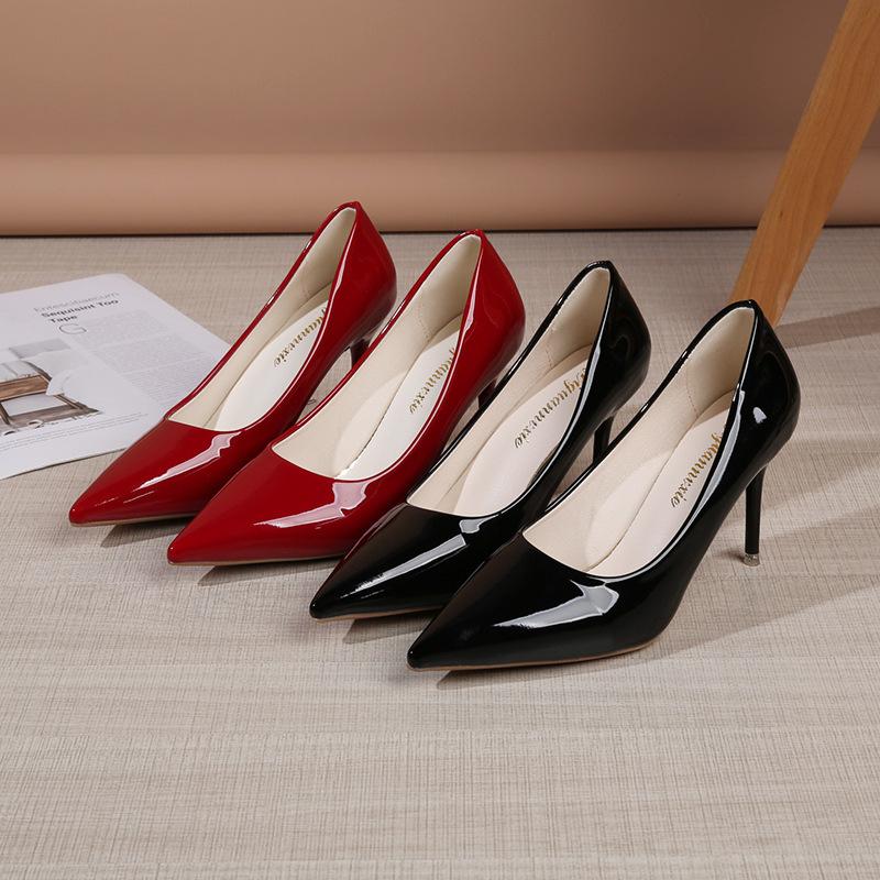 Туфли-лодочки с открытым вырезом, красные, на высоком каблуке, женские классические остроносые туфли на высоком каблуке, европейский и американский однотонный сексуальный большой размер, банкетные туфли-стилет