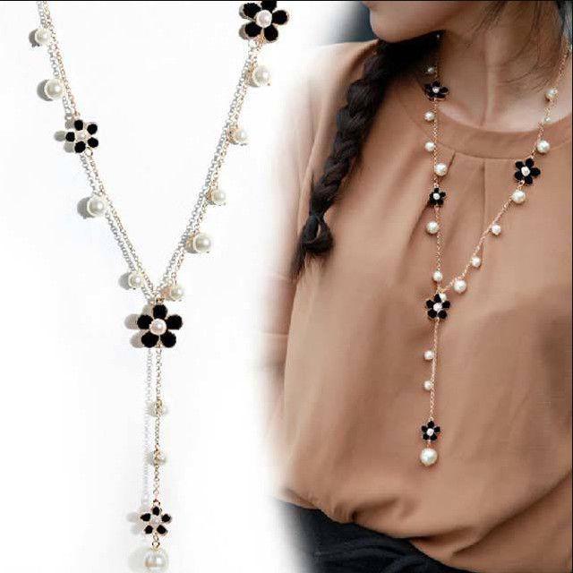 Корейское ожерелье с пятью лепестками жемчуга и кисточками для женщин