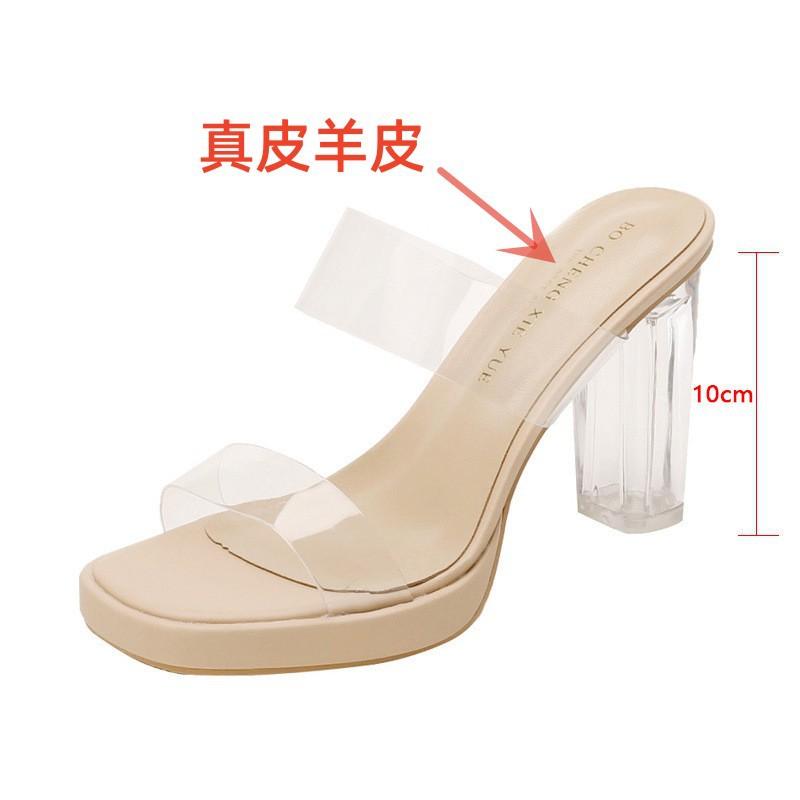 Прозрачные босоножки из овчины на высоком каблуке для женщин, лето 2024, новые водонепроницаемые туфли со стразами на каблуке и классные тапочки для женщин