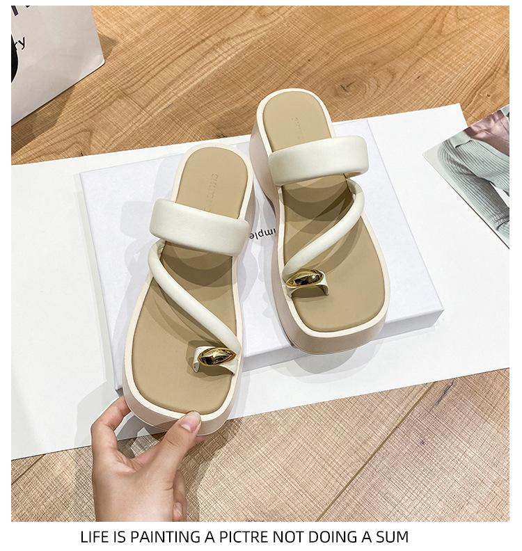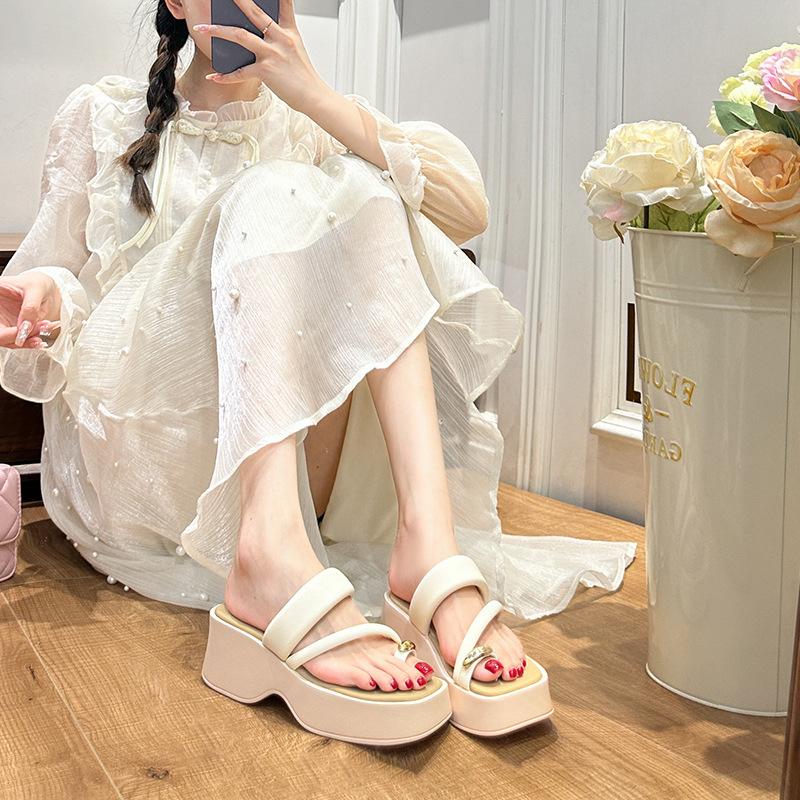Туфли на высоком каблуке с открытым носком, женские 2024, новые летние французские шлепанцы на толстой подошве-маффин, римские пляжные туфли