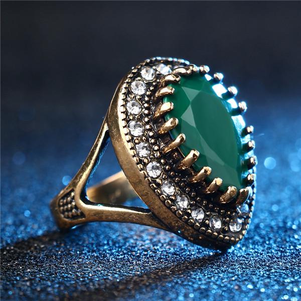 Ретро турецкое модное женское кольцо с драгоценными камнями, инкрустированные высококачественными ювелирными изделиями из смолы, элегантные овальные винтажные кольца