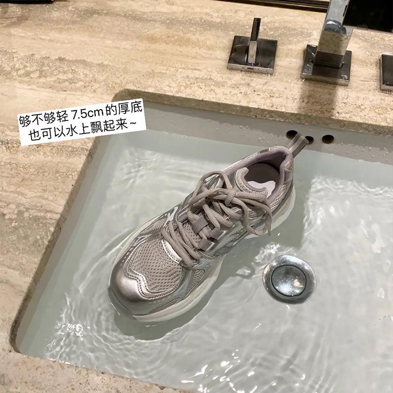 [Shei Su Yinyin] Paris old magazine~ серебристо-белая сетчатая обувь на платформе для спорта и отдыха, женская обувь для пап