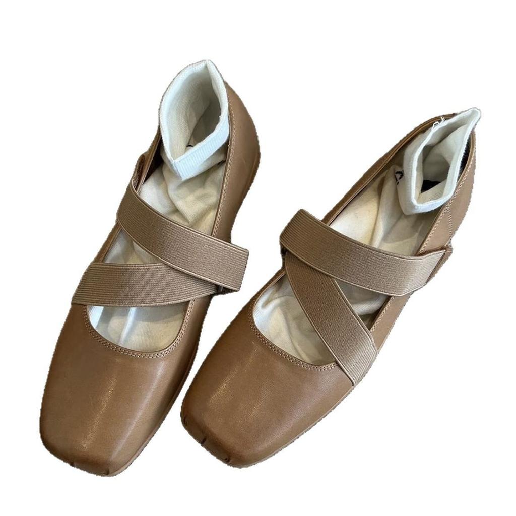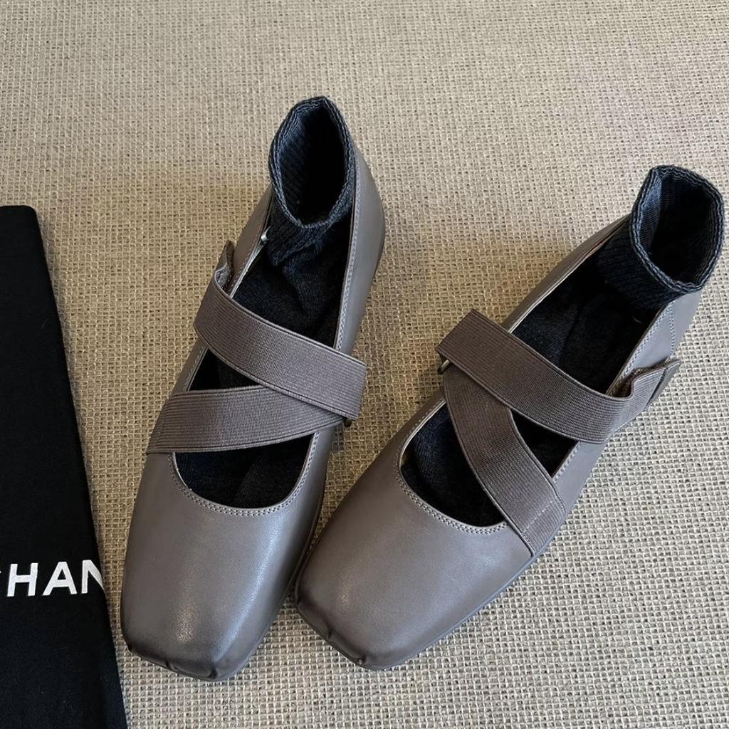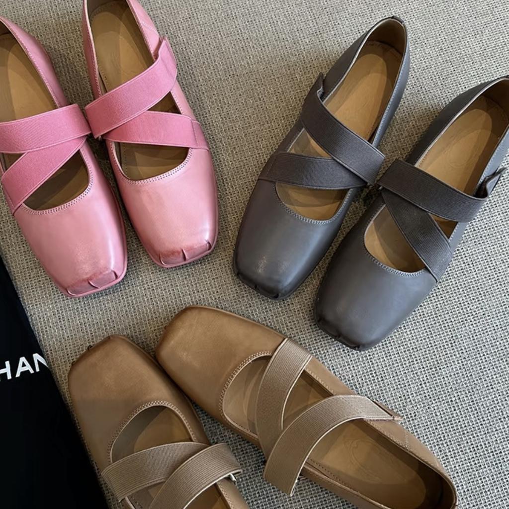Версия из коровьей кожи~ Женские балетки с квадратным носом и перекрещивающимися ремешками, с неглубоким горлом и плоской подошвой, повседневные ретро-туфли Мэри Джейн
