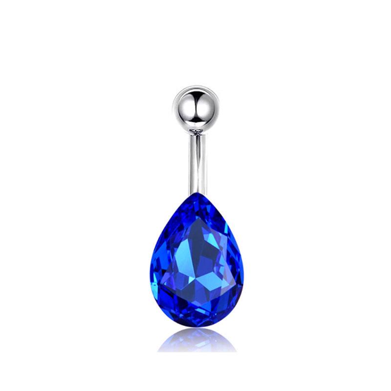 Кольцо для пупка с лунным цветком из циркона и подвеской в виде капли воды - нержавеющая сталь