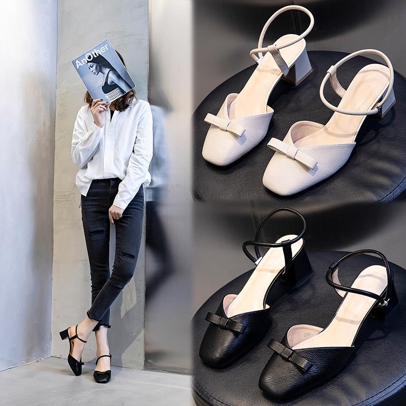 Весна и лето 2025 новые модные босоножки на толстом каблуке с сумкой на голову повседневная женская обувь 2025 прямые продажи однопедальная обувь женская прилив