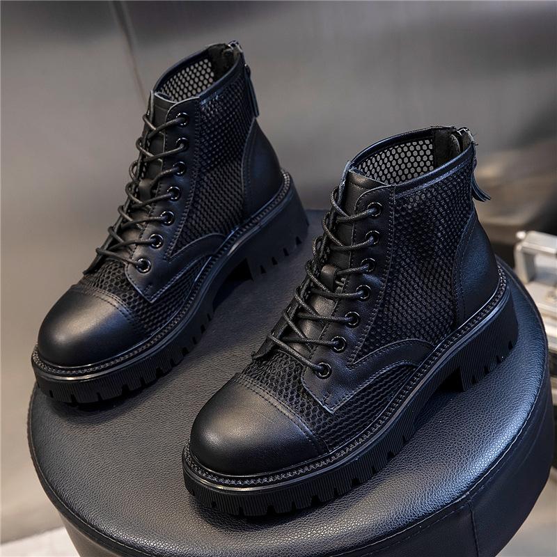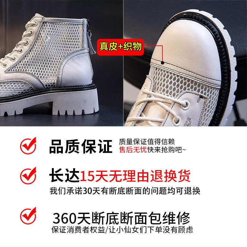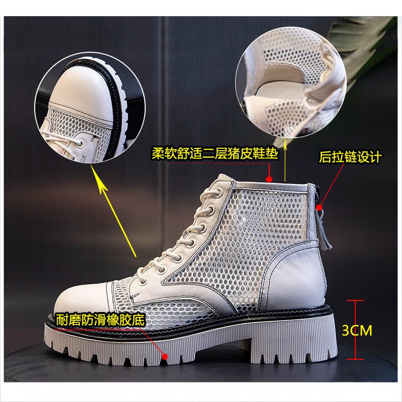 Кожаные женские туфли, ботинки Martin женские 2025 года, новые летние женские дышащие полые сетчатые ботинки, короткие ботинки на плоской подошве, детские ботинки Tide