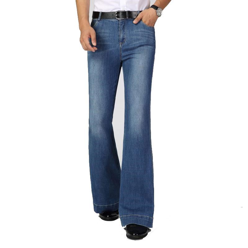 Мужские джинсы клеш средней посадки больших размеров из микрострейч-денима, брюки клеш, джинсы классического дизайна