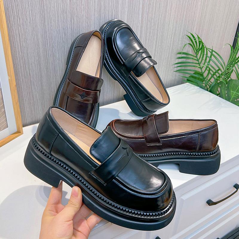 Новые женские мокасины 2025 года, весенние туфли на толстом каблуке с одной педалью, маленькие кожаные туфли в британском стиле, повседневная универсальная женская обувь, тренд