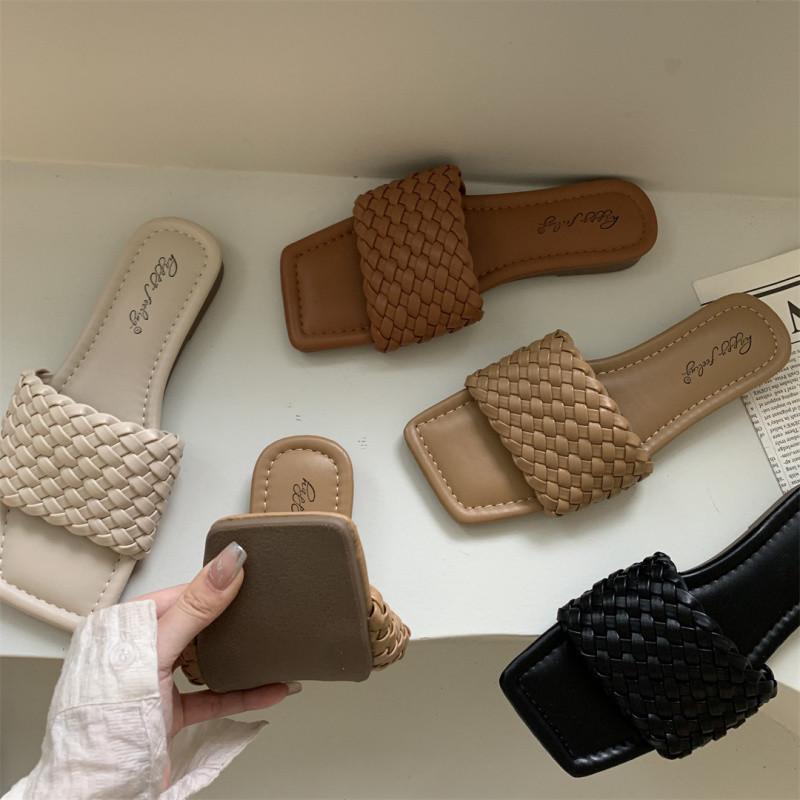 Нишевый дизайн крутые тапочки детские носят новый темперамент плоская подошва плетеные пляжные тапочки летом