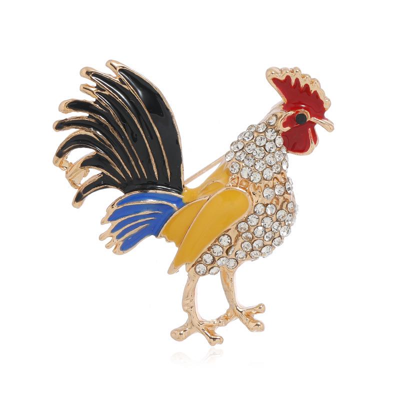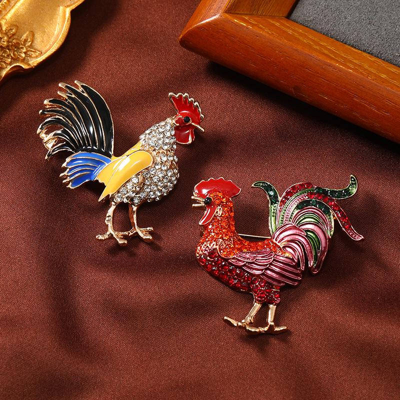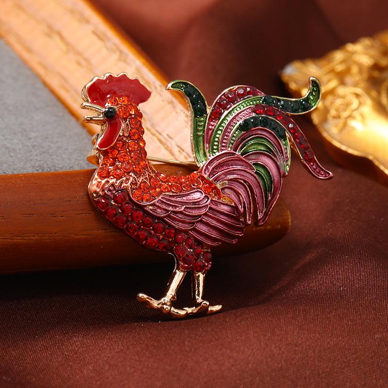 Изысканная брошь в стиле ретро с петухом и бриллиантовой эмалью - аксессуар-значок с животным