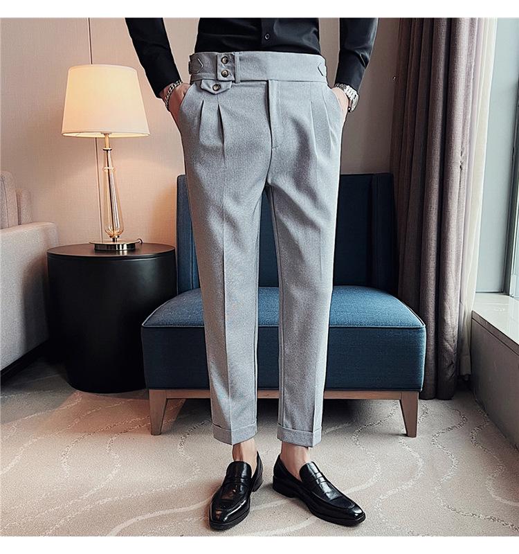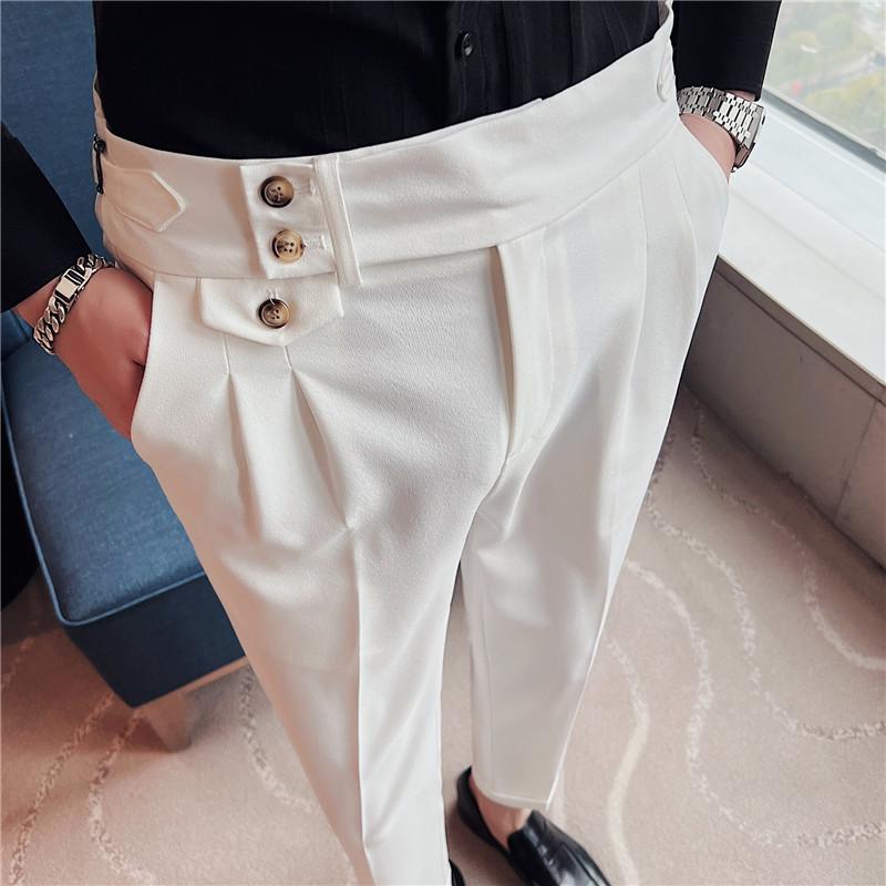 Откройте для себя непревзойденный стиль и комфорт с этими мужскими повседневными брюками прямого кроя с высокой посадкой.. Идеально сочетая современную корейскую моду с намеком на неаполитанский дизайн, эти брюки обязательно украсят ваш гардероб.. Изготовленные из мягкой и прочной хлопковой смеси, они обеспечивают идеальный баланс воздухопроницаемости и тепла, что делает их идеальными для любого повседневного выхода.. Их модный крой и трендовый дизайн делают их незаменимой вещью для тех, кто ценит как стиль, так и практичность в своей одежде.