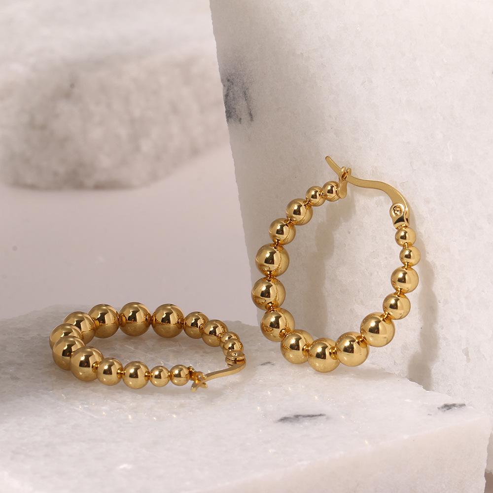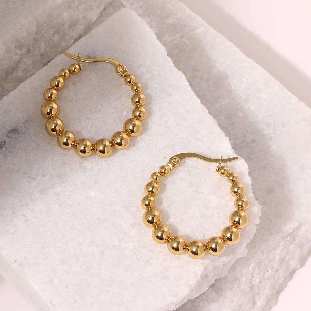 Европейские и американские креативные высококлассные серьги-кольца из нержавеющей стали с 18-каратным золотым покрытием и бусинами