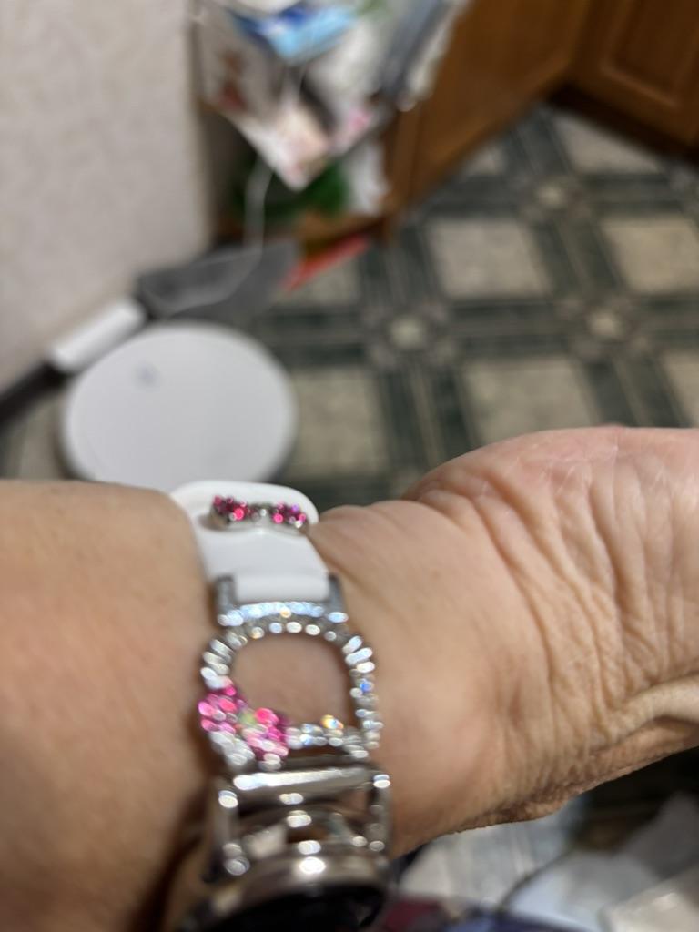Товар за 1 рубль, так бы не купила. Ремешок на руке выглядит не очень, т.к. частично из материала плотного, а не рещина