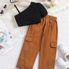 Комплект одежды для девочек: Летний детский однотонный пуловер с короткими рукавами и открытыми плечами, комплект из двух предметов с цветными джинсовыми брюками