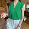 Офисная женская шифоновая рубашка женская летняя безрукавка 2023 года сексуальные майки однотонные майки с V-образным вырезом одежда — купить товар онлайн с бесплатной доставкой по всему миру!