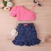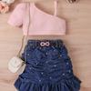 Модный комплект для девочек, летний детский однотонный топ без рукавов, джинсовая плиссированная юбка, ремень