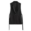 Обновите свой гардероб этим стильным однотонным жилетом на одной пуговице на шнуровке.. Этот жилет с лацканами костюма и кружевными украшениями создает повседневный, но модный стиль для поездок на работу.. Разрезы по обеим сторонам туловища придают образу элегантности..