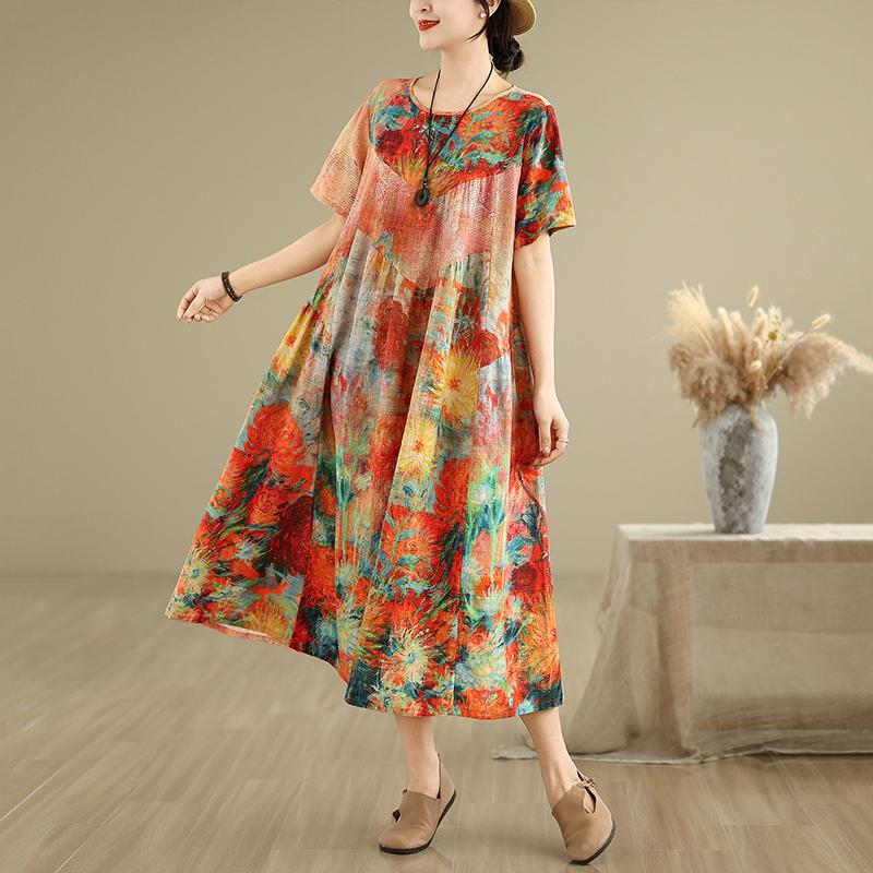 Dimanaf 2025 Женское платье больших размеров, весна-лето, повседневное платье с цветочным принтом, базовое винтажное свободное длинное платье макси 9326 — купить товар онлайн с бесплатной доставкой до всему миру!