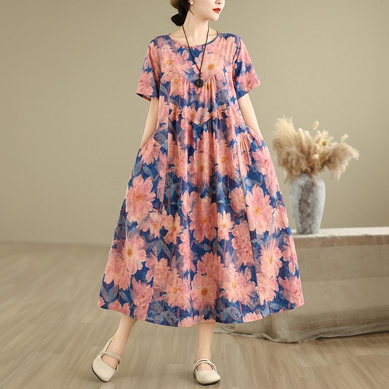 DIMANAF 2025 Женское платье больших размеров Весенне-летнее повседневное платье с цветочным принтом Базовое винтажное свободное длинное платье Макси 9325