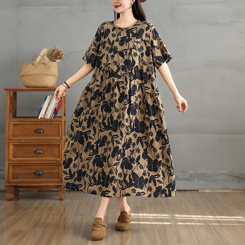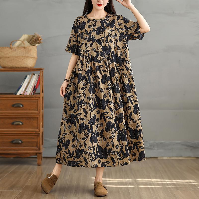 DIMANAF 2025 Женское платье больших размеров Весенне-летнее повседневное цветочное платье Базовое винтажное свободное длинное платье Макси 9309