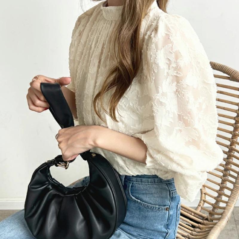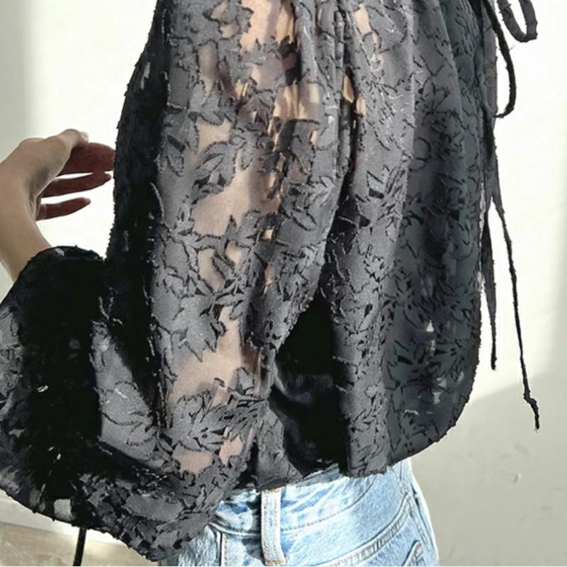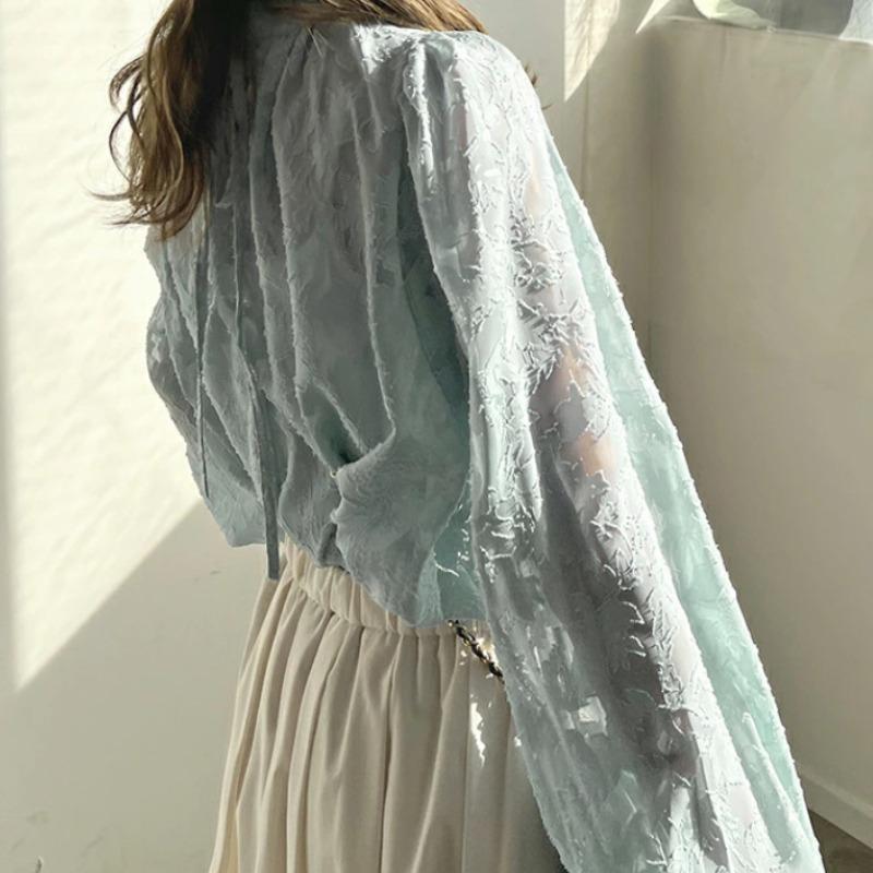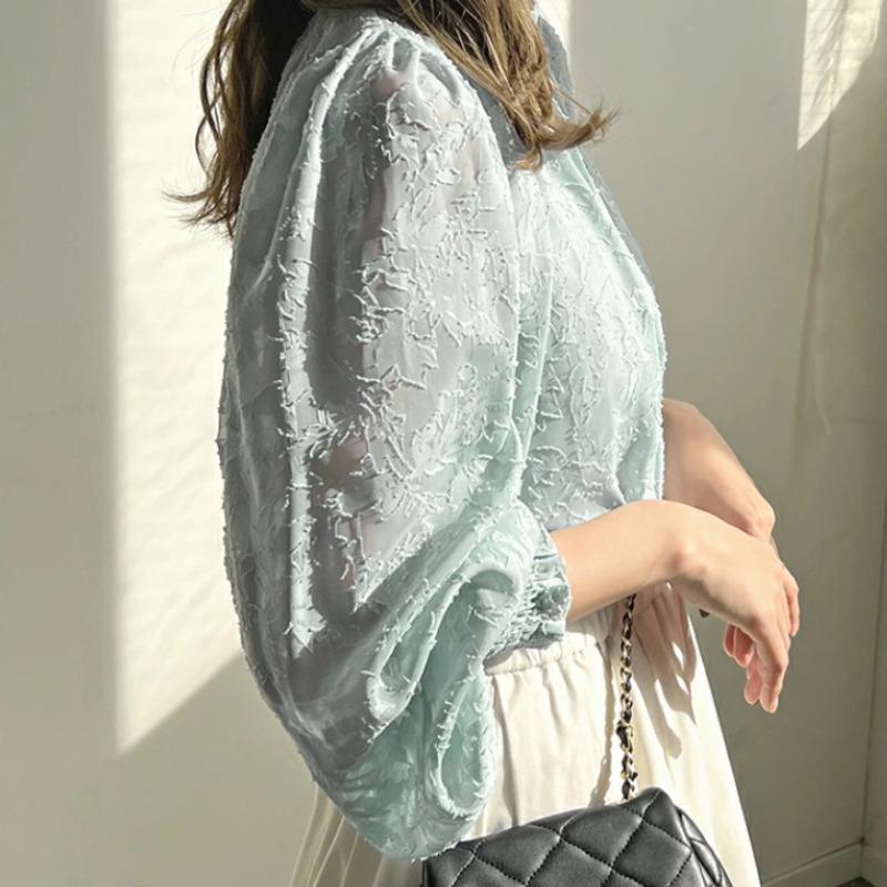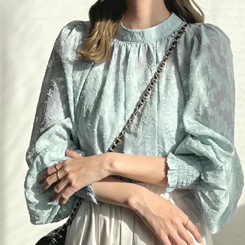 Модные новые повседневные рубашки с длинным рукавом, женские кружевные топы, элегантные воротник-стойка, облегающие свободные женские блузки, винтажные однотонные цветы, шифоновая женская рубашка 26363