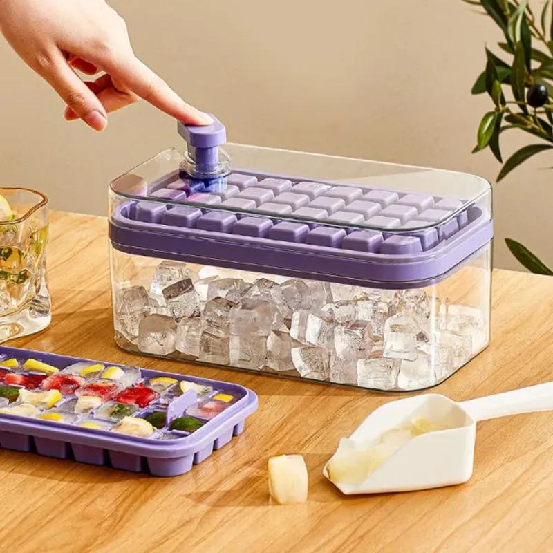 Форма для льда с контейнером для хранения, силиконовая, пресс-типа, для приготовления льда, гаджет для бара, кухонные аксессуары YLE019 — купить товар онлайн с бесплатной доставкой по всему миру!