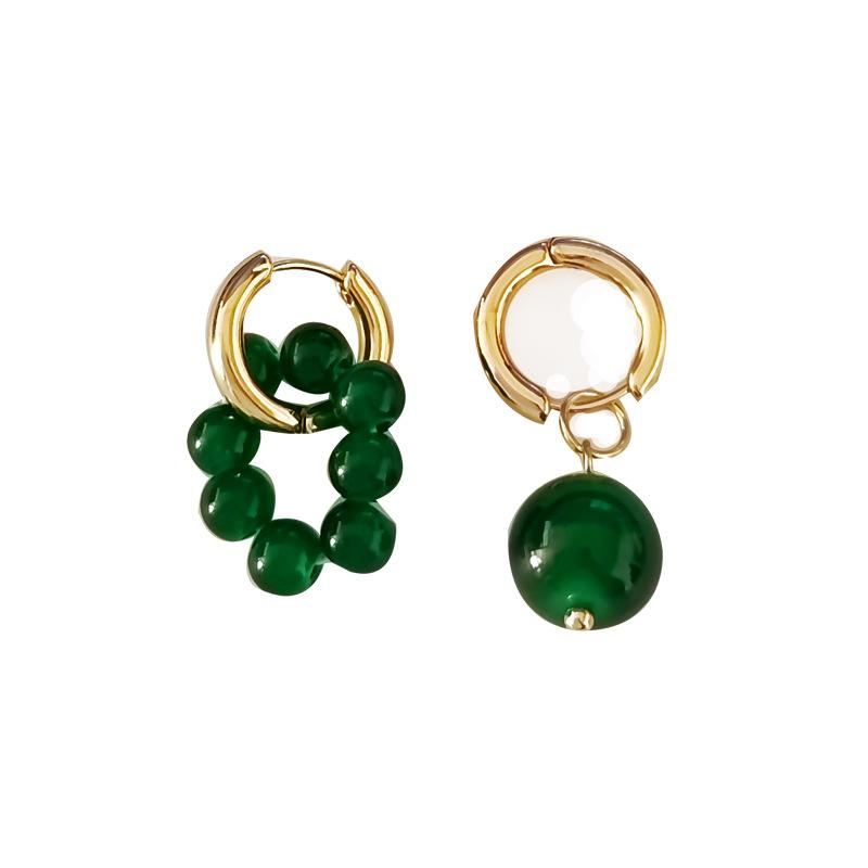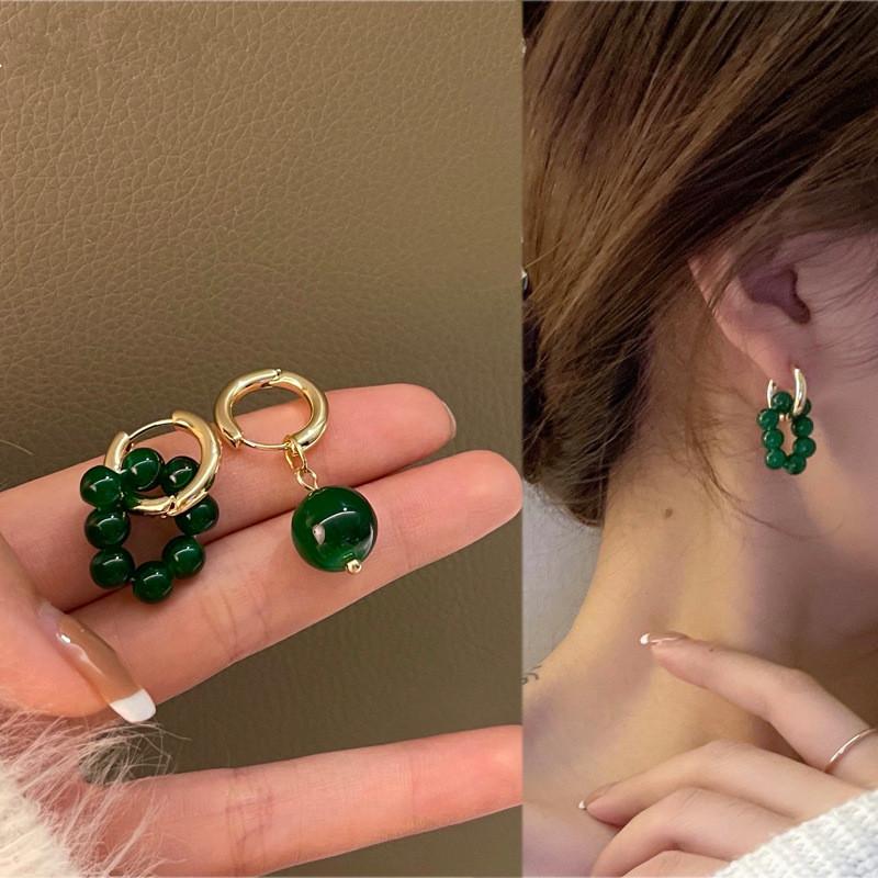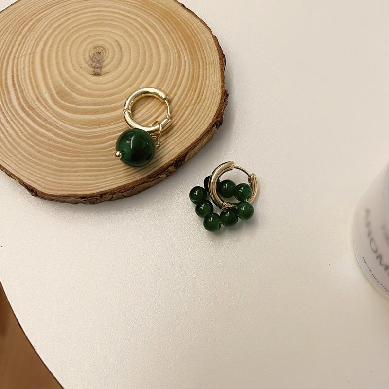 1 пара круглых зеленых бусин, асимметричные серьги-крючки, женские народные модные красивые висячие серьги с зеленым камнем