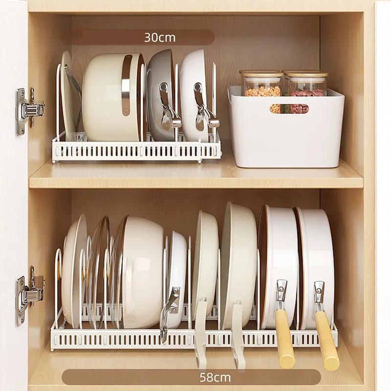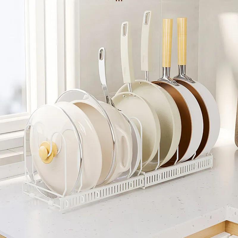 Органайзер для крышек кастрюль, расширяемый держатель для крышек, устойчивый к ржавчине, прочный, нескользящий, современная кухня LWY011
