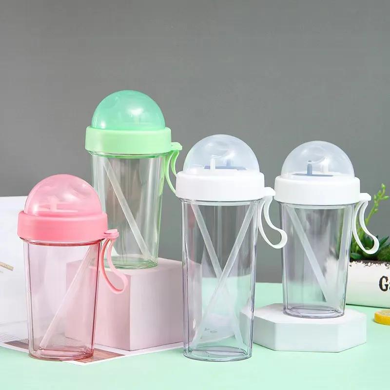 Двойная чашка для питья, милая девушка, студентка, уличная соломенная чашка, креативная автомобильная чашка, двойное назначение, пластик YLE11