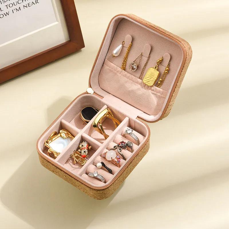 Пробковая коробка для хранения ювелирных изделий Портативная дорожная коробка для серег, колец, ожерелий, ювелирных изделий с принтами, секционированная коробка для хранения YLE197