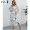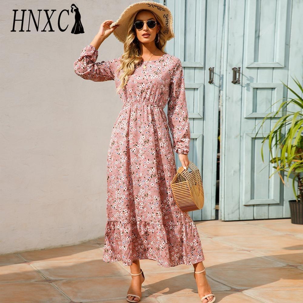 HNXC Весна Лето Богемный Женское Макси Платье Повседневный Длинный Рукав Высокая Талия Пляжное Платье Женские Цветочные Шифоновые Платья Vestidoes Mujer Новинка