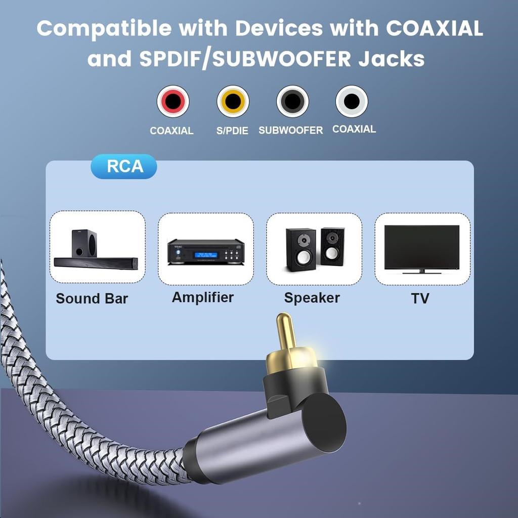 Кабель RCA, угловой цифровой коаксиальный кабель RCA 90 градусов, штекер-штекер для домашнего видео Hi-Fi, аудиокабель для домашних Г-образных динамиков, усилителей,