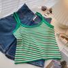 Женский повседневный укороченный трикотажный топ в полоску белого и зеленого цвета, корейский женский многоцветный полосатый трикотажный топ-майка с круглым вырезом