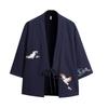 Хлопково-льняной кардиган-кимоно с вышивкой «Журавль»: Перьевое одеяние в китайском и японском стиле ханьфу, защищающее от солнца