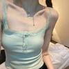 Летняя кружевная бретелька пэчворк кофточка женская однотонная без рукавов пуговицы майка