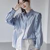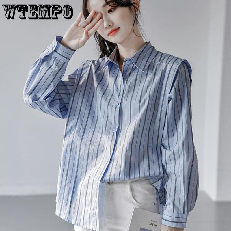 Весенне-осенняя женская рубашка с длинным рукавом и вертикальными полосками, небольшой модный топ