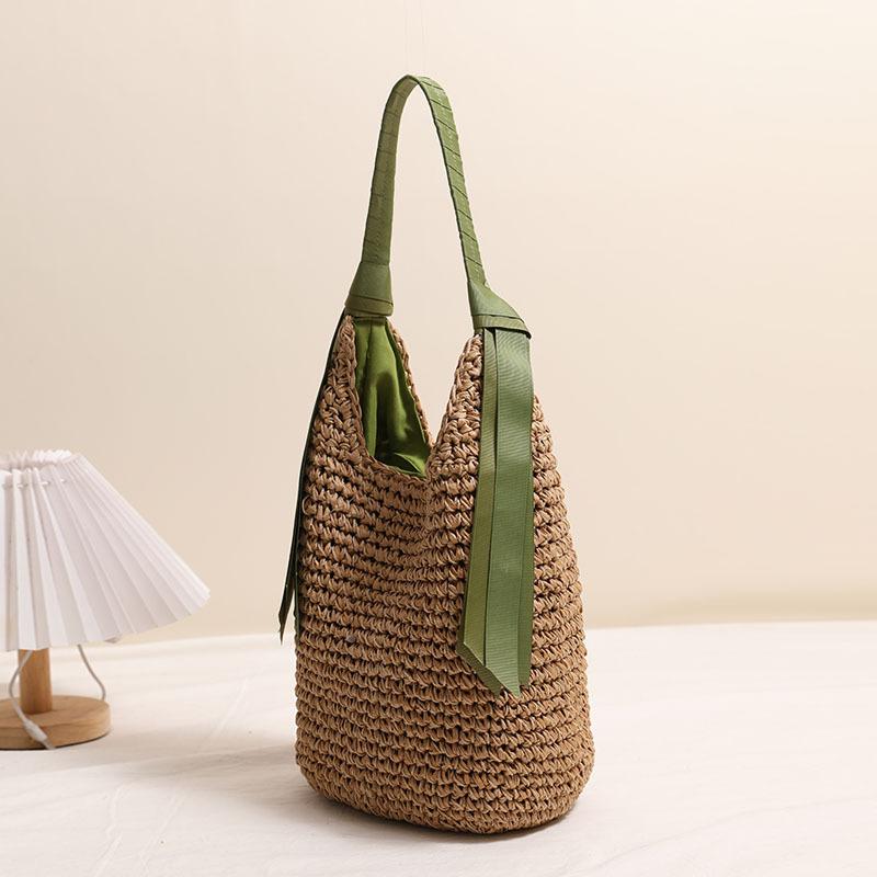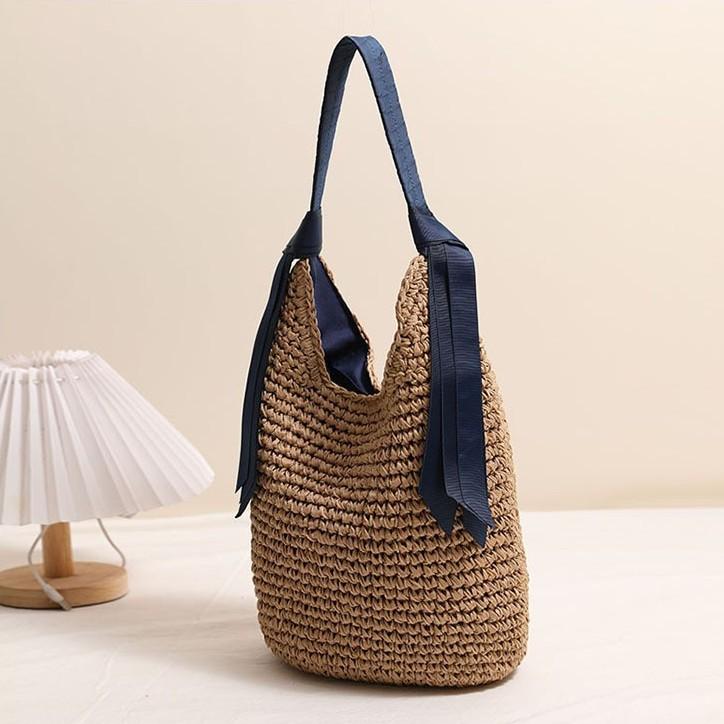 Женская соломенная сумка-тоут в азиатском стиле — большая однотонная плетеная пляжная сумка со съемной лентой для необходимых в отпуске вещей и нарядов в стиле бохо