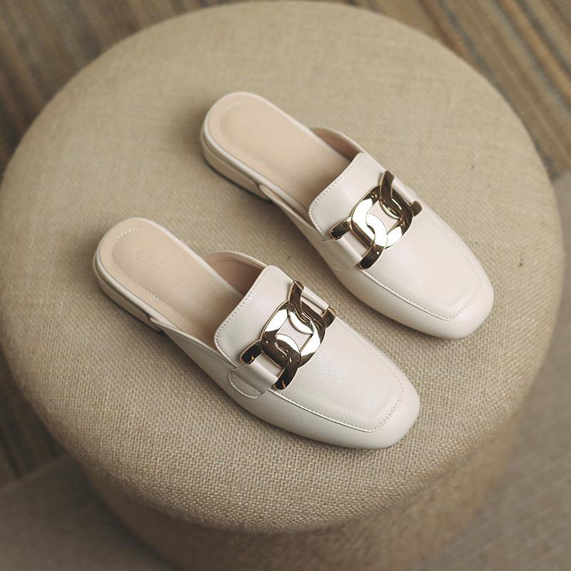 Кожаные туфли на плоской подошве для женщин Huizhou, туфли на каблуках, классные тапочки, женские туфли на низком каблуке, летняя новая сумка, обувь Muller для женщин