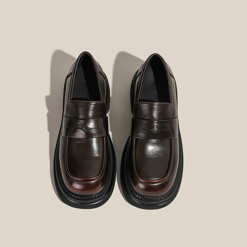 Туфли на плоской подошве из натуральной кожи Huizhou женские, виноградные, такие же, кожаные туфли, британский стиль, мокасины на высокой платформе женские