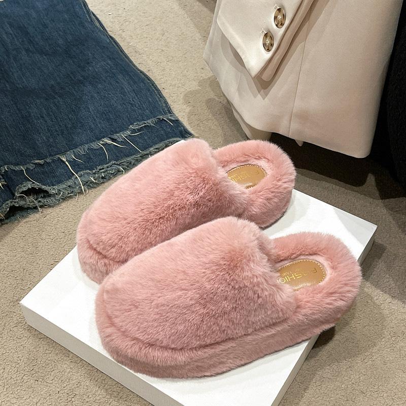 Красивые ~ Толстые пушистые тапочки большого размера, женская верхняя одежда 2025 года, осень-зима, новые нескользящие домашние тапочки из хлопка с мешковиной