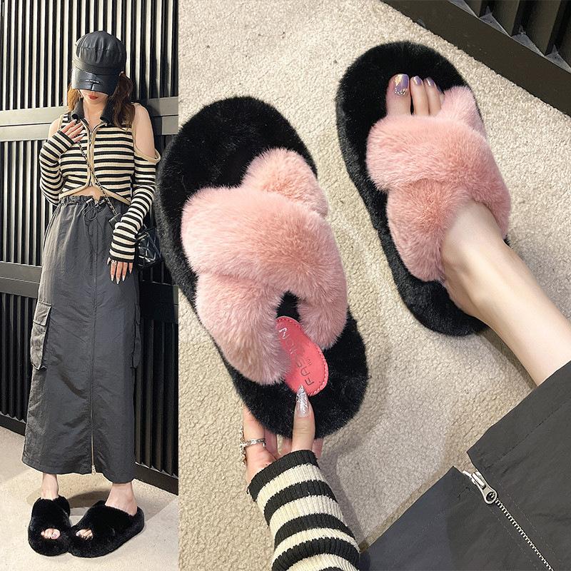 Женские пушистые тапочки большого размера с каблуком 4 см, зимние новые 2025 года, утолщенные, теплые, нескользящие, корейская версия, домашние тапочки из хлопка